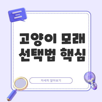 적절한 모래 조합으로 고양이의 생활 만족도를 높이고, 집안 환경도 쾌적하게 유지하세요. 당신의 고양이에게 '딱 맞는' 모래를 찾아주는 것이 가장 현명한 선택임을 잊지 마세요.